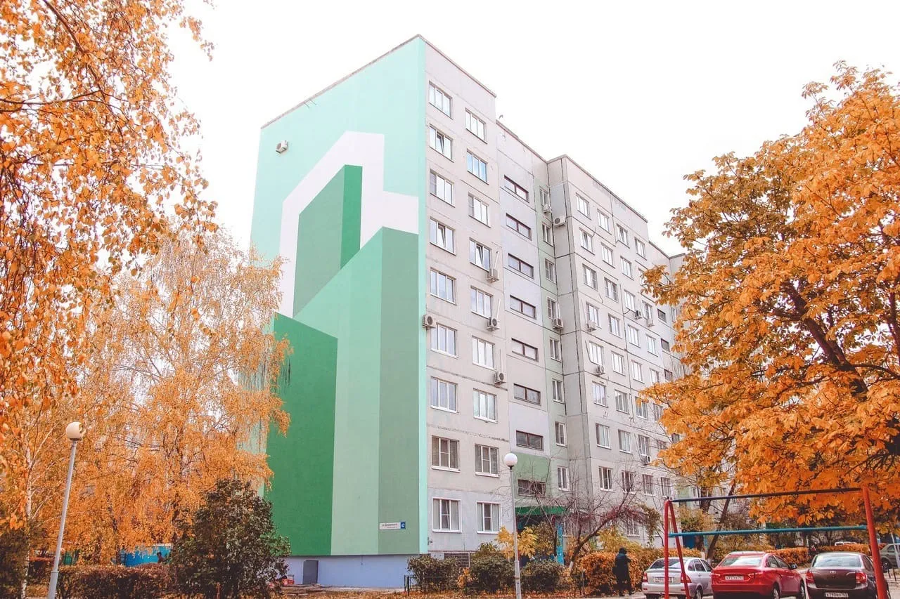 Фасад новокуйбышевской школы искусств разрисовали яркими красками / На фасаде тольяттинского дома появилась семья / Фасады ТГУ "отдали" мастерам стрит-арта