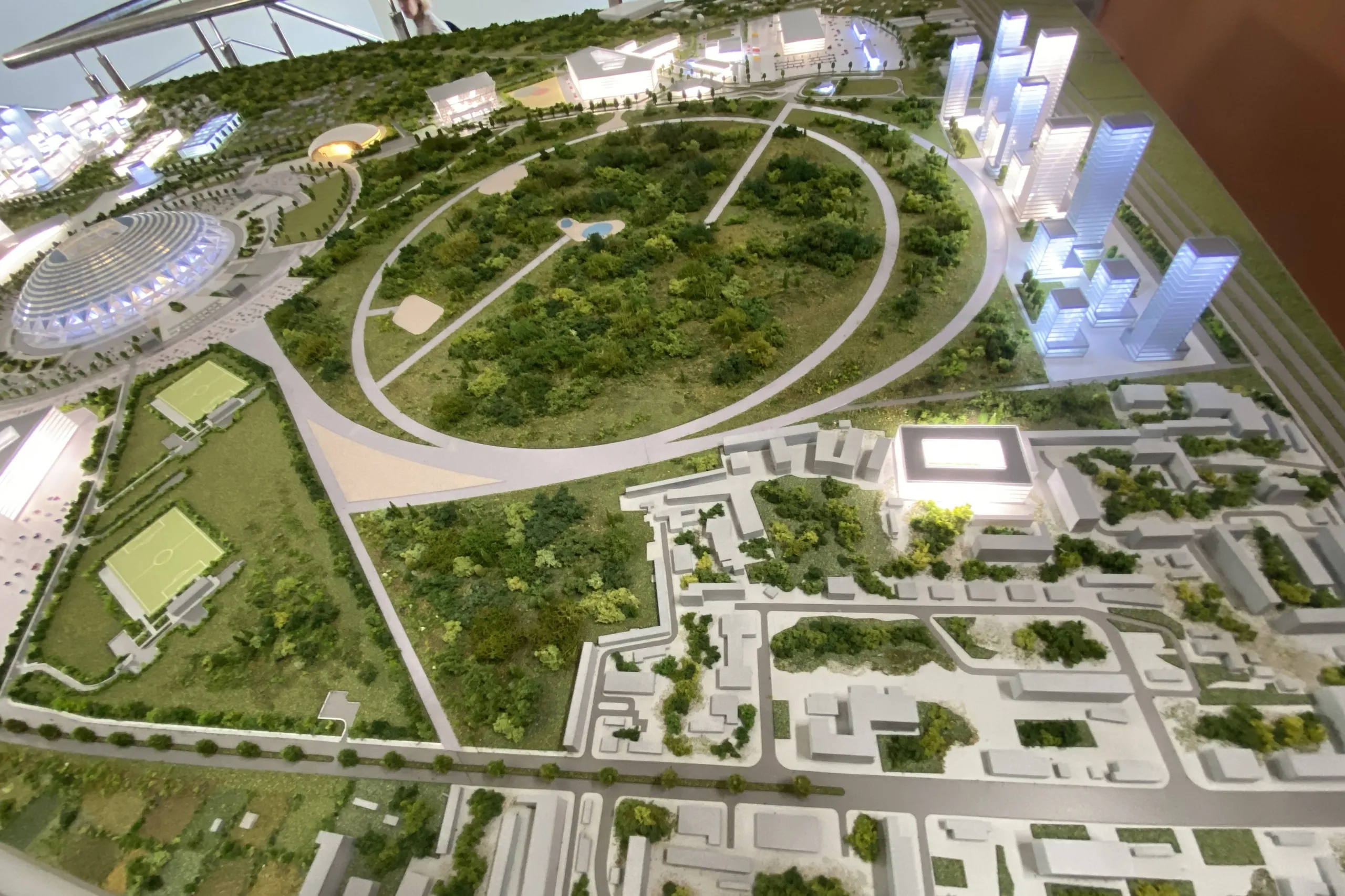Оба проекта основаны на принципах безбарьерной образовательной среды, непрерывности общественных пространств, сохранения природных объектов. Например, небольшую круглую рощу в центре площадки архитекторы предлагают сохранить, поместив в центр кольцеобразного здания выставочного центра.