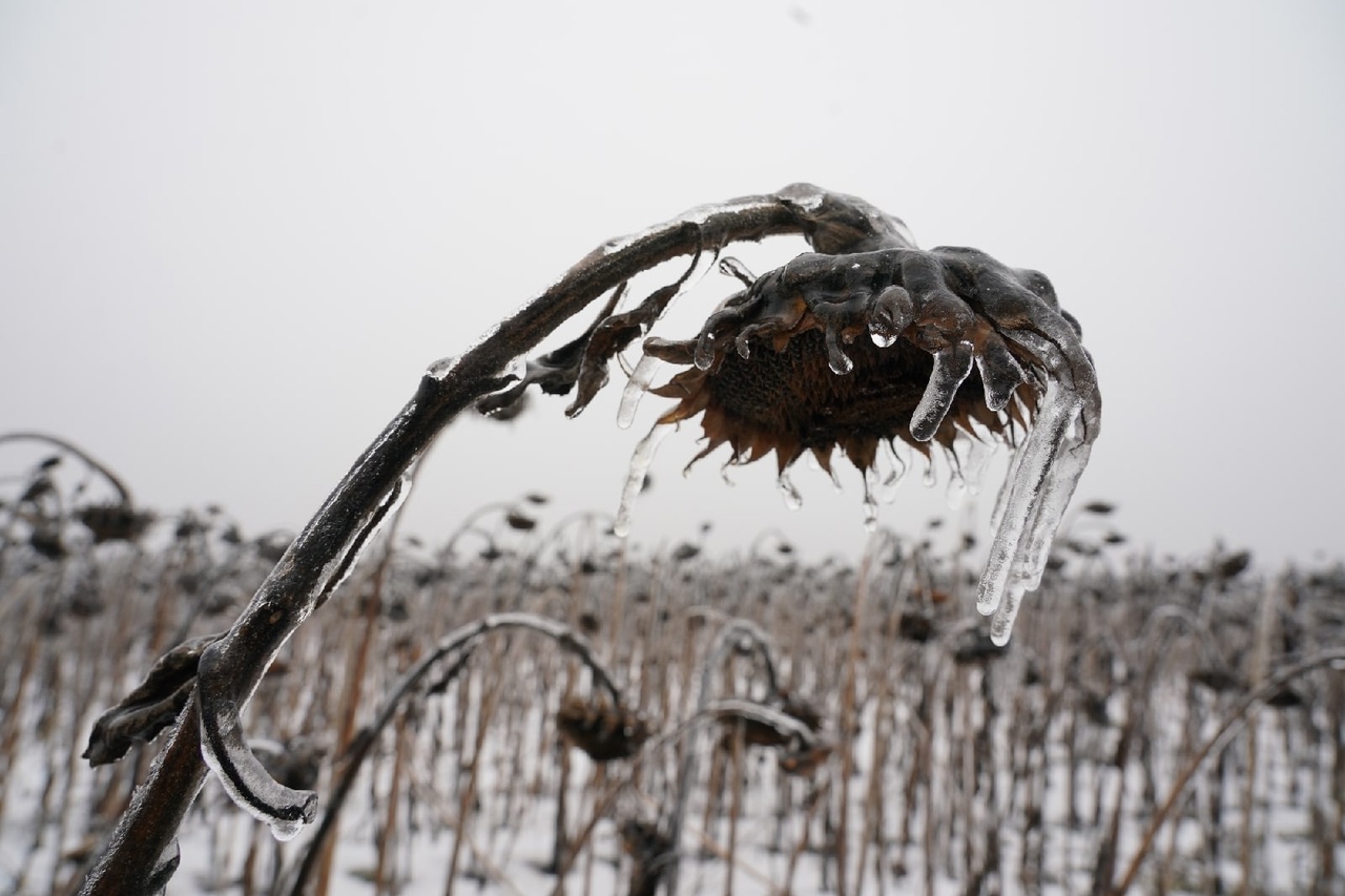 - Это редкое явление, было очень красиво и необычно видеть сосульки на подсолнухе, - отметил фотограф.
