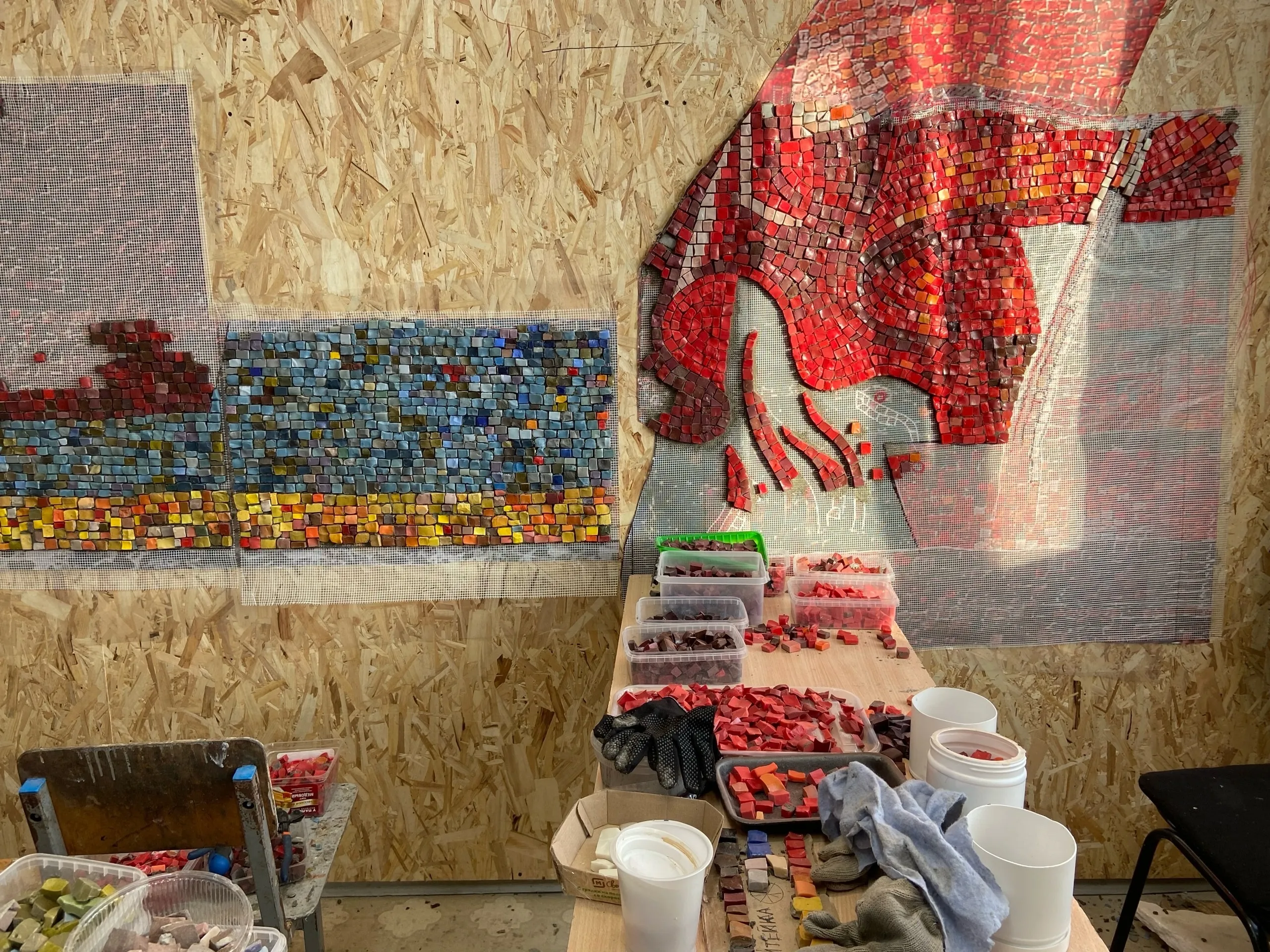 Рисунок тольяттинские художники заново собирают по плиточкам из смальты.