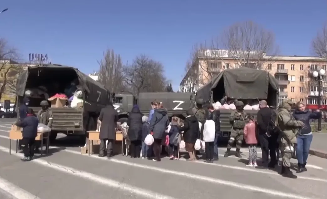 Получить продукты питания может любой желающий. Поэтому каждый день в Херсоне выстраивается очередь из мирного населения к военной технике РФ, где выдают гуманитарную помощь. Прежде всего помогают женщинам с детьми, пожилым и инвалидам. Мирному населению кроме продуктов привезли одеяла и подушки, бытовую химию, а детям - школьные принадлежности. Пенсионеры дополнительно получают чай и лекарства, за что благодарят военнослужащих Вооруженных сил Российской Федерации.