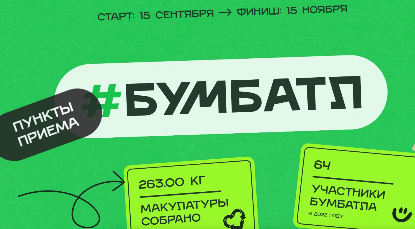 Акция, организованная в поддержку нацпроекта "Экология", проводится в стране уже в третий раз. Объединенные усилия дают мощный результат, поэтому "БумБатл" в этом году не ограничивается, как прежде, только воспитанниками детских садов, школьниками и студентами колледжей и вузов. Теперь собирать и сдавать макулатуру в рамках акции смогут также сотрудники компаний и различных организаций, присоединиться к акции возможно и индивидуально.
