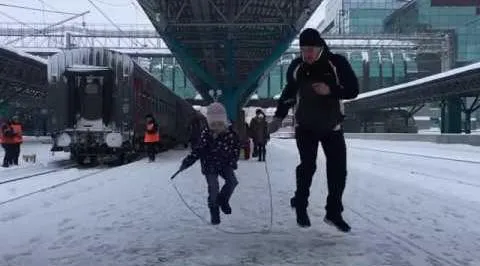 Ролик со скачущими в унисон через скакалку молодым человеком и трогательной 4-летней девочкой стремительно набирает популярность в областной столице. Видео челябинец Максим Костандов снял днем, 14 февраля, во время остановки поезда на железнодорожном вокзале в Самаре.