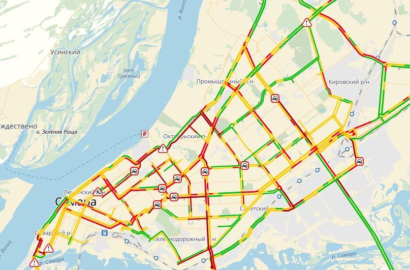 Уже сейчас основные дорожные артерии областной столицы практически полностью парализованы: по улице Ново-Садовой и Московскому шоссе транспортный поток движется со скоростью всего 3-5 км/ч. Также сильно затруднено движение по улицам Советской Армии, Ново-Вокзальной, Тухаческого, Полевой, Водников, Кутякова, Крупской и по проспекту Кирова.