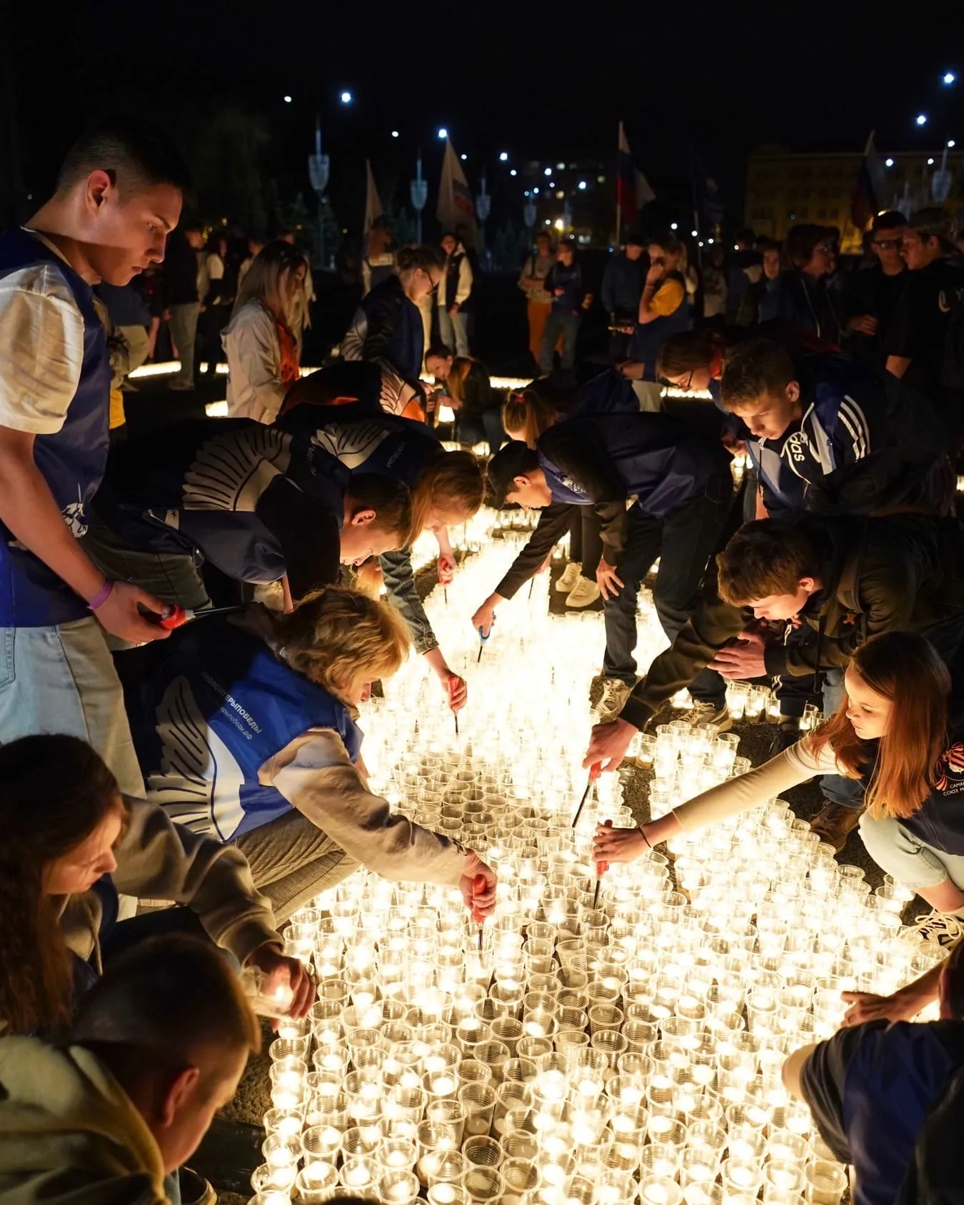 Огненную картину памяти "Волонтеры Победы", юнармейцы, студотрядовцы, поисковики создавали на площади Куйбышева несколько часов из 30 тысяч свечей. Это напоминание о том, какой огромный вклад в Великую Победу внесла Самара, в прошлом - Куйбышев, ставший запасной столицей и кузницей грозной боевой техники. Про Самару говорят "здесь тыл был фронтом". Ценой невероятных усилий и трудового героизма сотен тысяч человек за годы войны в Куйбышеве были выпущены десятки тысяч штурмовиков Ил-2, на заводах региона фактически была выпущена каждая пятая авиабомба, изготовлен каждый третий артиллерийский снаряд. Во время войны не было ни одной крупной операции, в которой бы не использовалась техника, созданная руками куйбышевских рабочих.