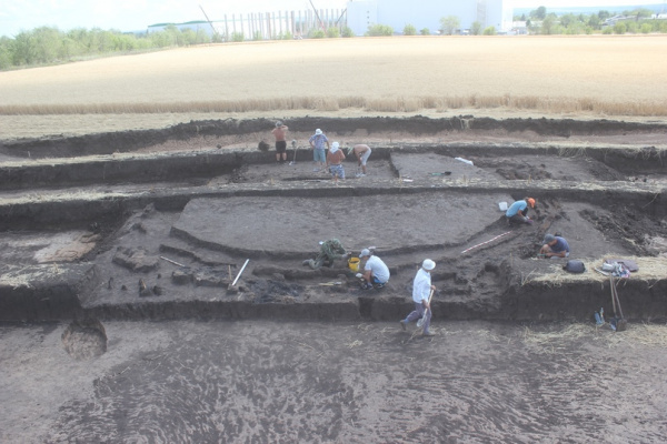 При раскопке кургана археологи нашли круговую деревянную конструкцию диаметром 14 метров, которая чудом сохранилась до наших времен. Она была сожжена, но все равно простояла многие века. Также там обнаружили 14 лошадиных черепов. Все они были разложены не хаотично, а в определенном порядке. На месте захоронения нашлось и немало артефактов: фрагмент глиняного сосуда, железный ледоходный шип, резное костяное навершие в виде крупной птицы.