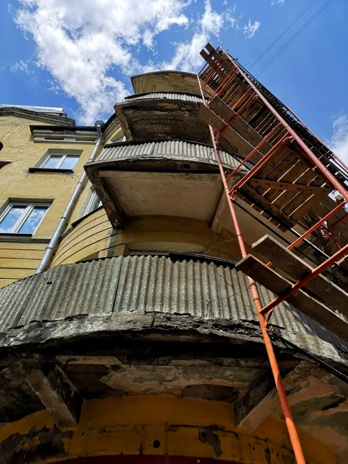 Как пояснили в Фонде капитального ремонта, специалисты восстанавливают лицевую часть дома. Однако это самый сложный этап работы, потому что на фасаде много архитектурных элементов и разрушающихся балконов. Ведь дом был построен еще в 30-х годах прошлого века.