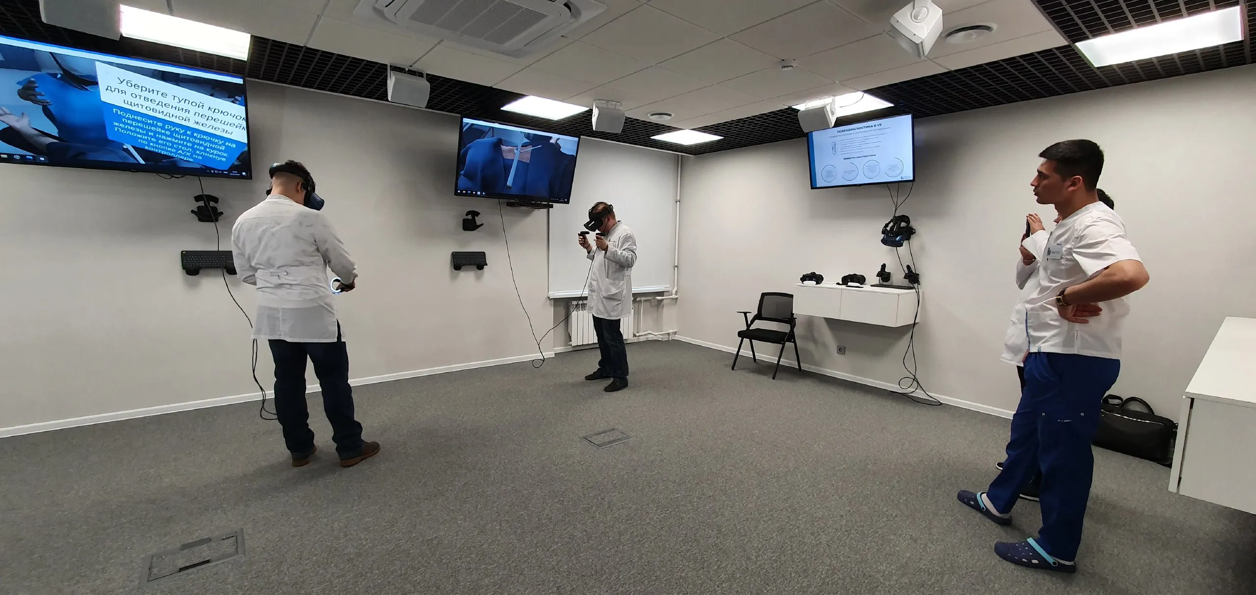 В симуляторе появился многопользовательский режим, теперь за процессом могут наблюдать до десяти студентов. В виртуальном симуляторе реализованы режимы "доктор" и "ассистент". За их действиями студенты могут наблюдать при помощи специальных шлемов, причём дистанционно.