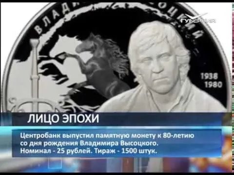 Центробанк выпустил памятную монету с изображением Владимира Высоцкого - к 80-летию со дня рождения легендарного артиста. Ее номинал - 25 рублей. Тираж - 1500 штук. В этом году появится еще одна монета, посвященная Высоцкому - только номиналом в 2 рубля - в серии "Выдающиеся личности России". В Куйбышев (ныне Самару) Высоцкий приезжал 2 раза - в мае и ноябре 1967 года. Его выступления стали знаковым событием в культурной жизни города.