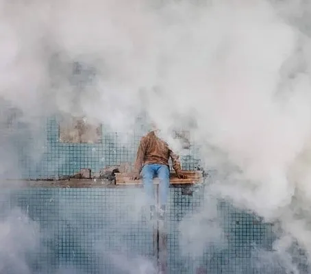 На высоте четырех этажей он вместе со своей командой показал работу, в которой отчетливо видны эмоции человека, который становится заложником пожара.