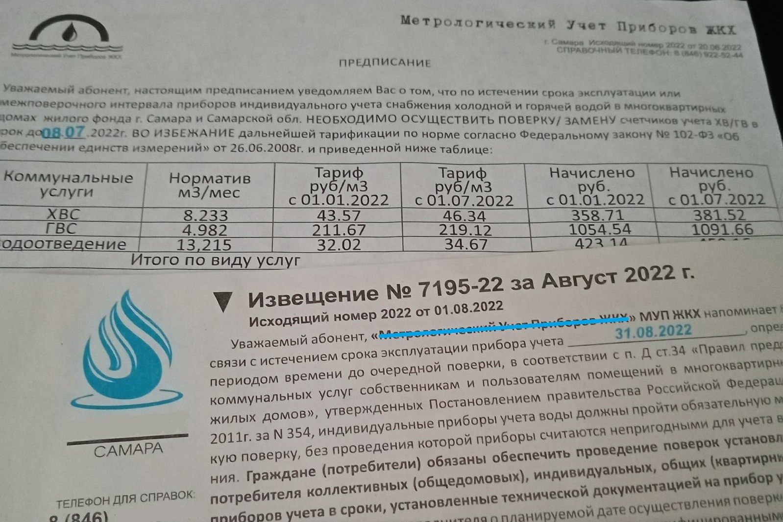 Самарцам приходят подозрительные извещения с призывом срочно поменять счетчики