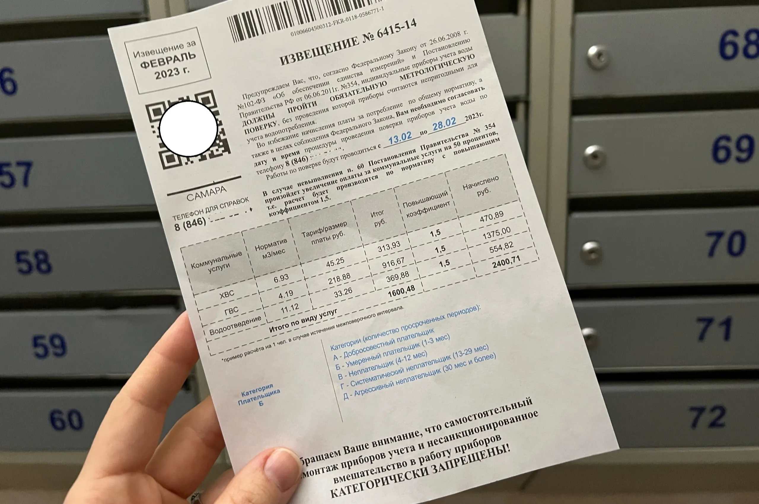 Самарцы вновь стали получать листовки, оформленные как платежные документы. В них говорится о необходимости срочно провести проверку счетчиков. Для убедительности есть ссылки на закон и угрозы повышения тарифа, если до конца месяца требование не будет исполнено.