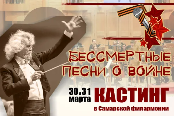 Причем выступить может любой желающий. Такую возможность предоставит жителям губернии Самарская филармония в рамках проекта "Бессмертные песни о войне”. Для того чтобы стать его участником, необходимо пройти кастинг. Победителей пригласят на сцену филармонии, где они в майские праздники смогут спеть военную песню, а аккомпанировать будет симфонический оркестр. Кастинг состоится 30 и 31 марта. Конкурсантов просят прислать заявку до 25 марта по адресу shumilina-yg@filarm.ru