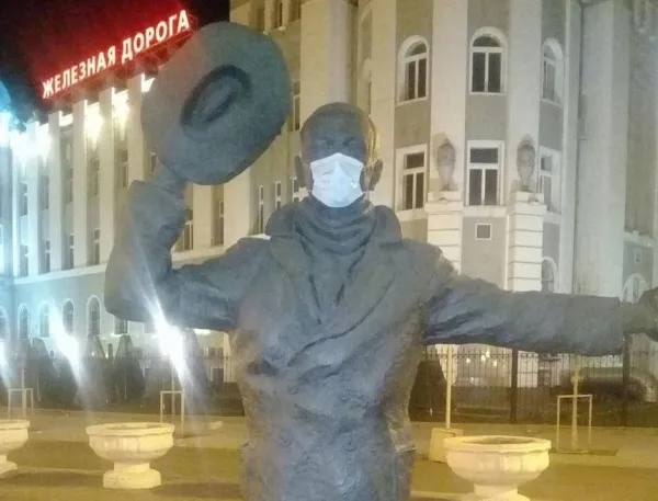 Сегодня, 8 апреля, пользователи поделились ещё одной фотографией. Памятник Юрия Деточкина около железнодорожного вокзала также "защитили" от вируса.