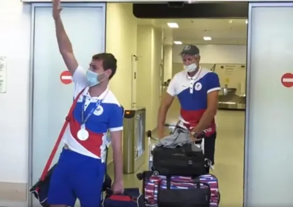 В самарском аэропорту Курумоч болельщики встретили спортсменов Александра Вязовкина и Павла Сухова. Накануне они завершили свои выступления в Токио.