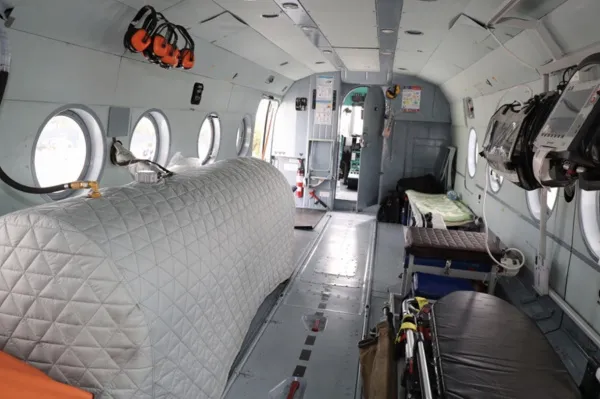 МИ-8 оборудован новейшей медицинской техникой. В считаные минуты вертолет может доставить больных из самых отдаленных точек области в ведущие клиники.