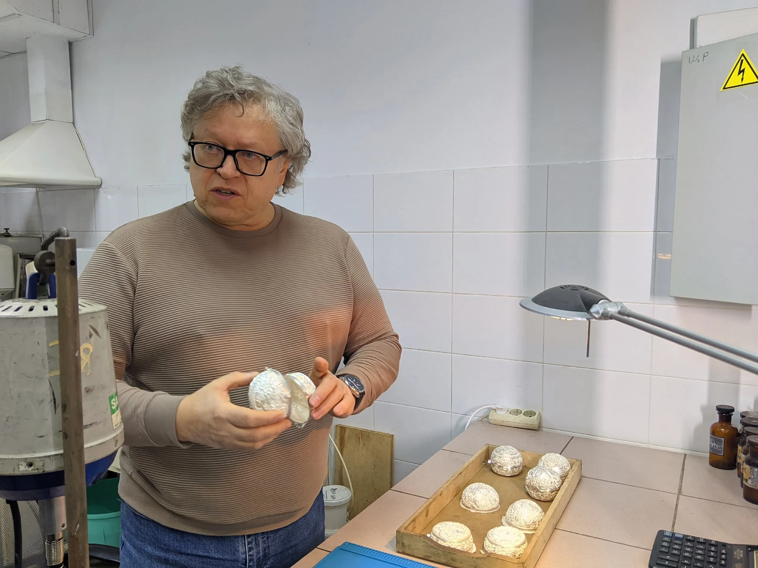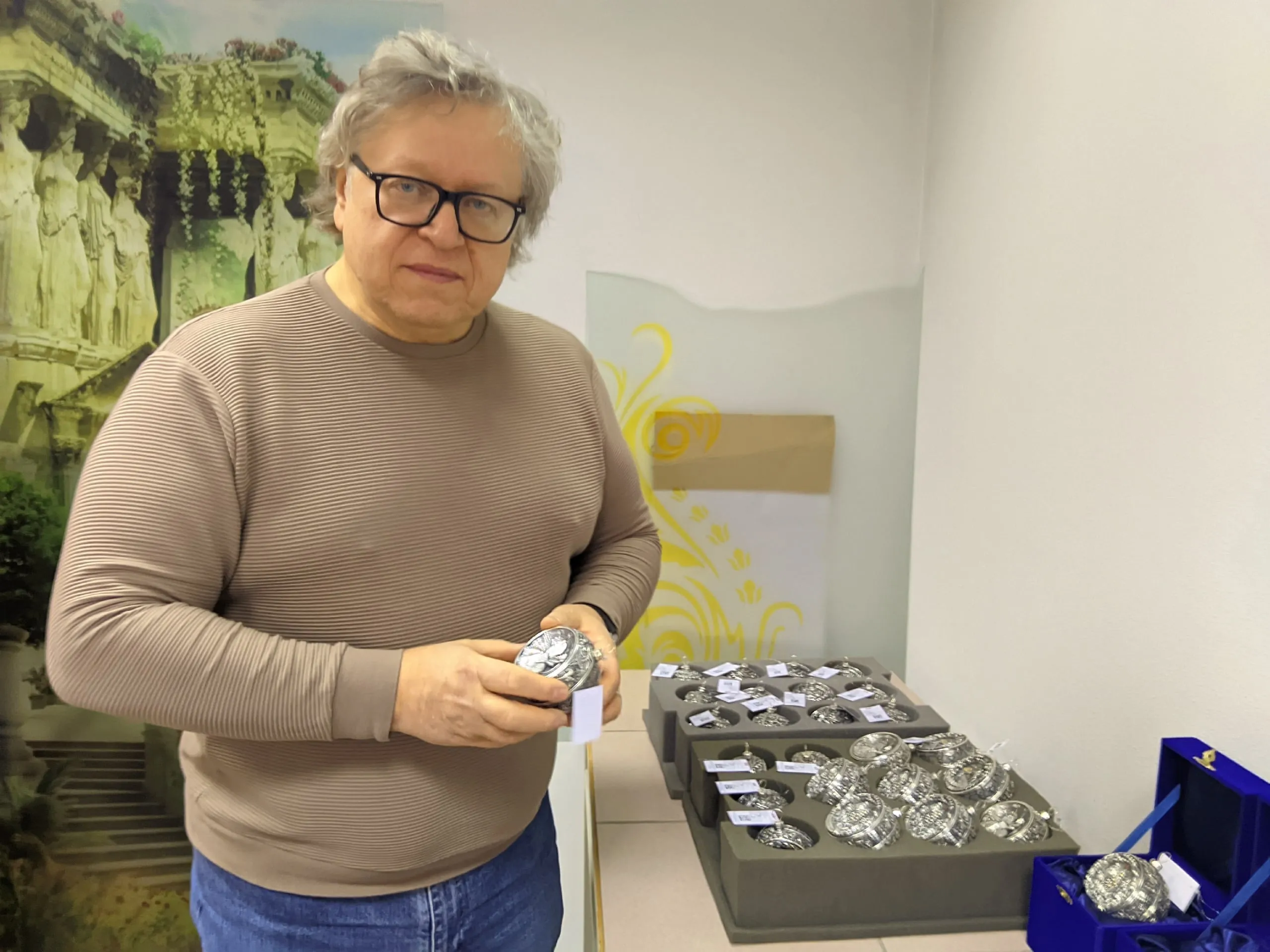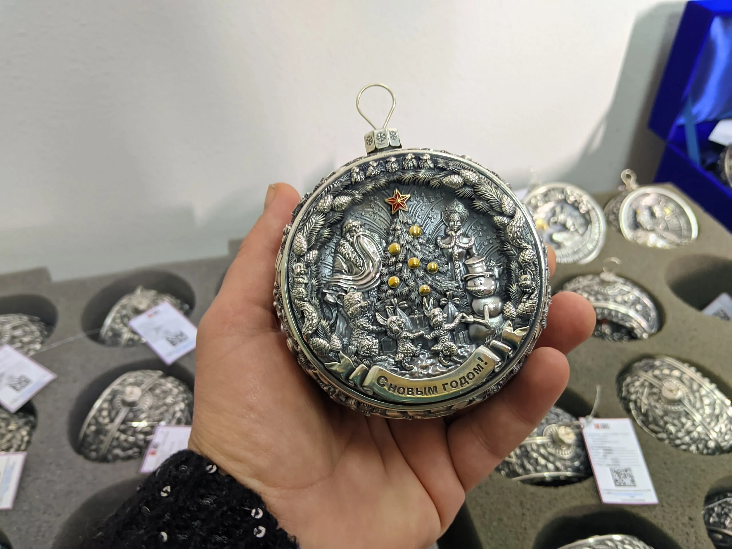 - Выстраивая свою стратегию, мы придумали идею изготавливать елочную игрушку в виде серебряного шара, - рассказывает глава предприятия. - Он восемь сантиметров в диаметре и весьма легкий: весит около 50 граммов. В его создании мы применяем коллаборацию направлений: с одной стороны, современная цифровая технология 3D-моделирования, благодаря которой дизайнер воплощает идею, а далее с помощью сплава технологий - от прототипирования до гальванопластики - мы создаем изделие, после чего доводим его до совершенства дополнительным нанесением эмали, патины, позолоты.