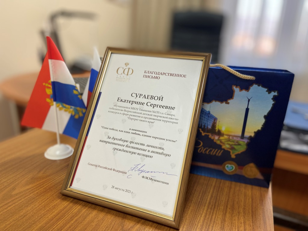 Сенатор Российской Федерации - представитель от исполнительного органа государственной власти Самарской области Фарит Мухаметшин наградил победителей конкурса, отметив духовную зрелость, патриотичное воспитание и активную гражданскую позицию самарских школьников. Он подчеркнул: