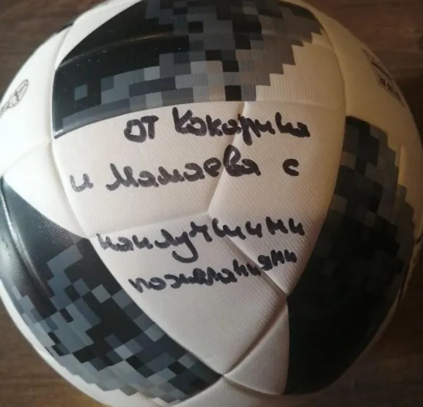 Теги:  футболисты, кокорин и мамаев, футбольный мяч, автографы