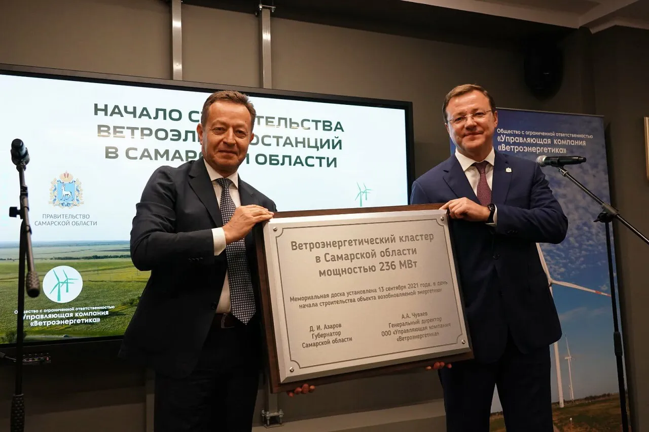 Проект реализуется благодаря соглашению, подписанного Дмитрием Азаровым с Фондом развития ветроэнергетики на Петербургском международном экономическом форуме в июне 2021 года. И уже в сентябре удалось начать строительство ветроэлектростанций. Это стало возможным за счет поддержки инвестора со стороны Правительства Самарской области.