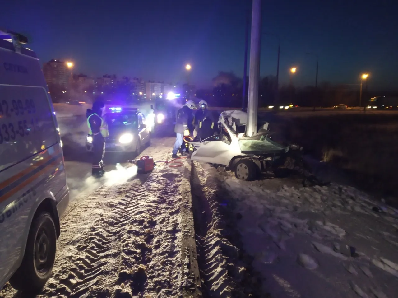 Иномарка влетела в опору боком, буквально "обняв" ее. Машина превратилась в груду металла. Погибшего водителя из салона извлекали специалисты. На аварийно-спасательные работы у них ушел примерно час.