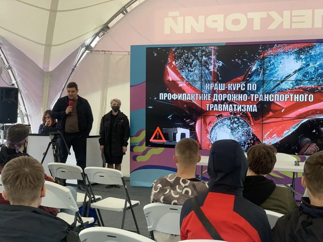 Чтобы привлечь внимание молодого поколения к всеобщей проблеме безопасности на дорогах, по инициативе региональной Госавтоинспекции при содействии общественной организации "Ночной патруль", в рамках фестиваля прошел краш-курс по безопасности дорожного движения. Присутствующим был продемонстрирован специально подготовленный видеоряд, состоящий из подборки сюжетов с мест дорожных аварий, в которых погибли и получили тяжелые ранения люди.