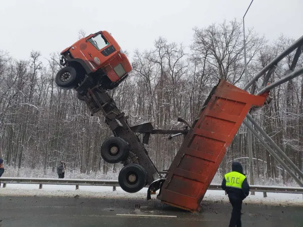 Сейчас специалисты занимаются демонтажем помятой самосвалом конструкции. На время работ движение по этому участку перекрыли.