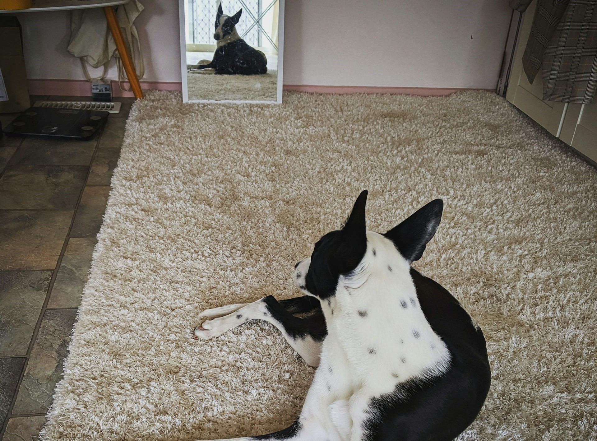 Когда пес видит зеркало, кажется, будто он пытается распознать себя или другого сородича. Он может начать проявлять интерес к отражению, обходить его, лаять или пытаться обнюхать "объект". Однако, не найдя запаха, питомец может быстро охладеть к этому явлению.