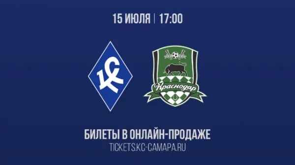 Ровно через неделю, 15 июля, на "Самара Арене" состоится матч между "Крыльями Советов" и "Краснодаром". Билеты на игру можно приобрести уже сейчас, но только онлайн - на официальном сайте "КС". В день матча их купить уже будет нельзя.