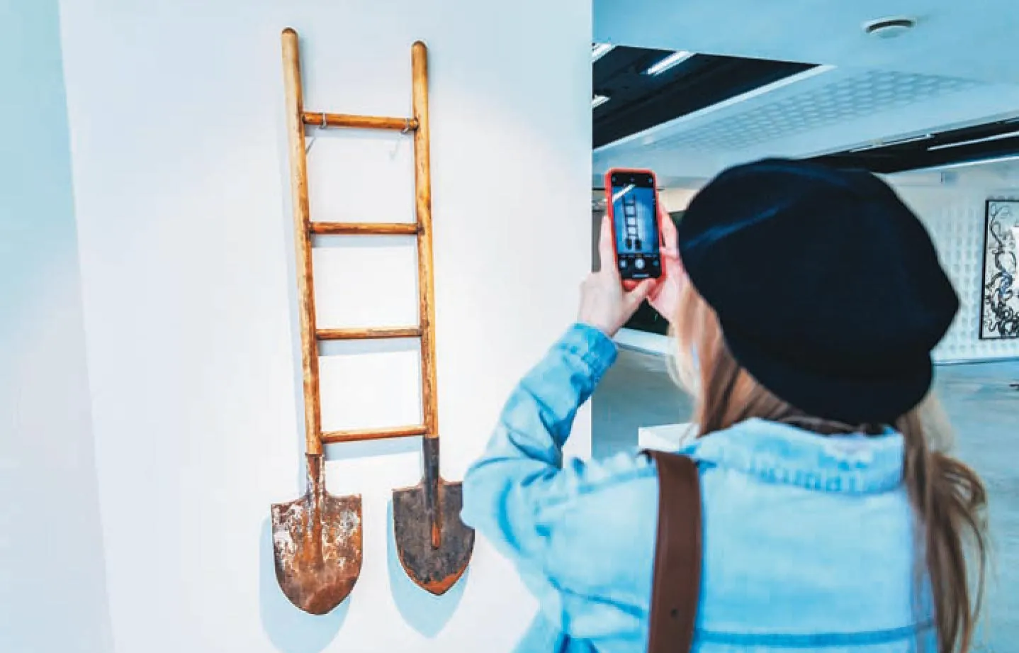 На выставке можно увидеть арт-объекты из дерева, которые имитируют, например, одновременно костяную человеческую ногу и трость. Это серия "Палки" Александра Филимонова. В нее также входит работа в виде двойной лопаты и лестницы. У этих вещей есть функциональное назначение. Лопатами можно раскопать яму и углубиться, а по лестнице взобраться повыше. Арт-объект символизирует движение вверх и вниз, то есть устройство судьбы и жизненного пути.