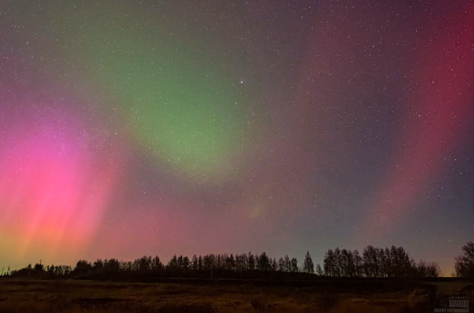 По словам Евгения, такого яркого и мощного северного сияния в Самарской области не было никогда. Световое небесное "шоу" в розово-зелено-жёлто-фиолетовых тонах длилось почти три часа – с 23:00 до 2:00. Наблюдением за этой красотой самарцы обязаны сильнейшей геомагнитной буре. Благодаря ей полярное сияние увидели жители многих регионов Центральной России и обеих столиц.