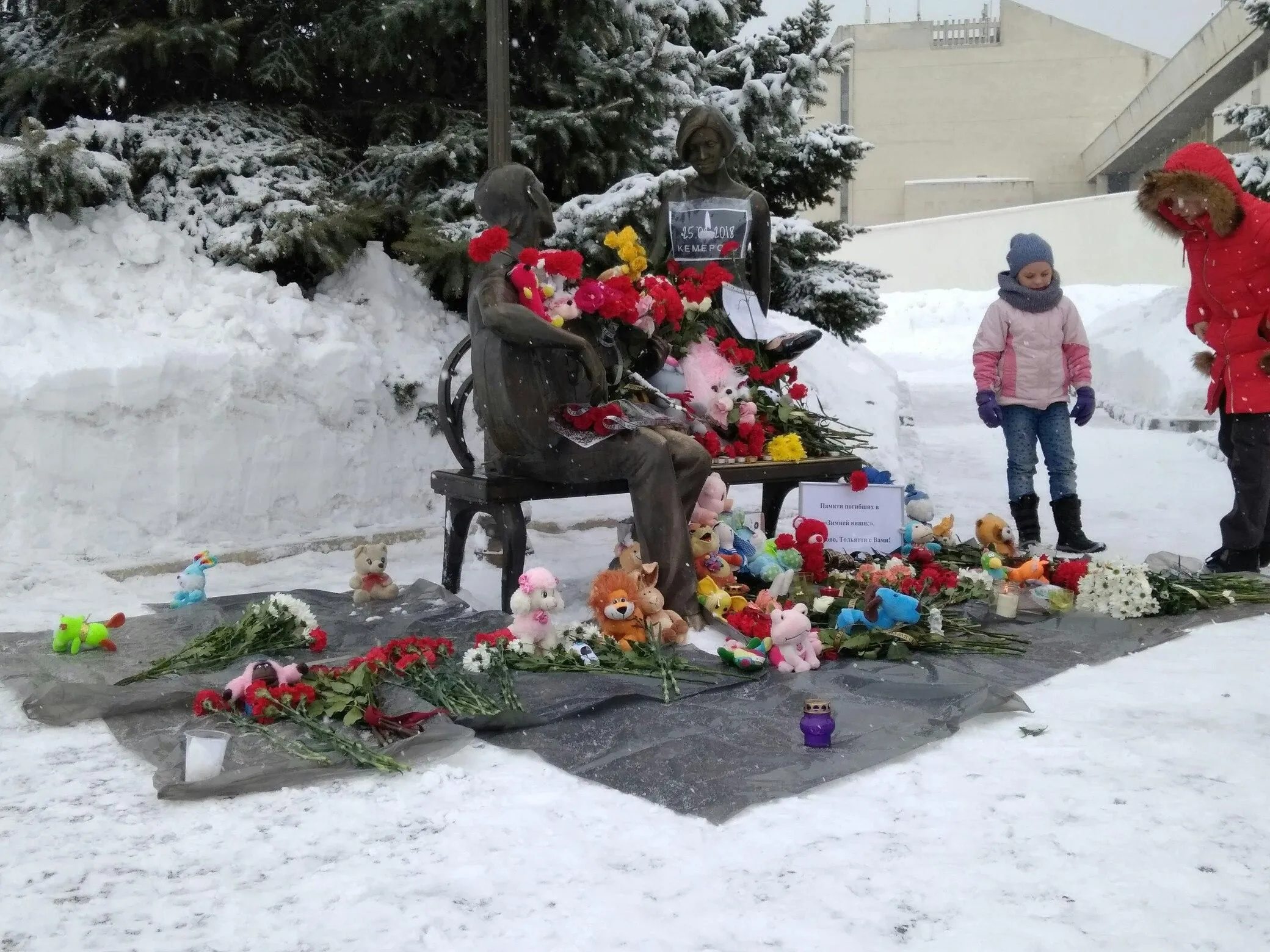В связи с трагическими событиями, произошедшими в Кемерове, 28 марта в России объявлен траур. Пожар в торговом центре "Зимняя вишня", случившийся 25 марта, унес жизни 64 человек. Среди жертв есть дети. Тольяттинцы могут почтить память погибших на ул. Революционной, 25, у обелиска Славы на площади Свободы, а также на площадке перед молодежным драматическом театром. В Сызрани и Чапаевске жители приносят свечи, цветы и игрушки к Вечному огню.