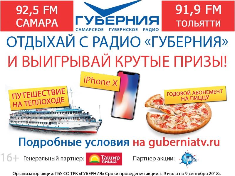 iPhone X, круиз на теплоходе в Казань, экскурсии по Самаре и области, а также годовой абонемент на пиццу могут выиграть участники конкурса "Отдыхай с "ГУБЕРНИЕЙ".