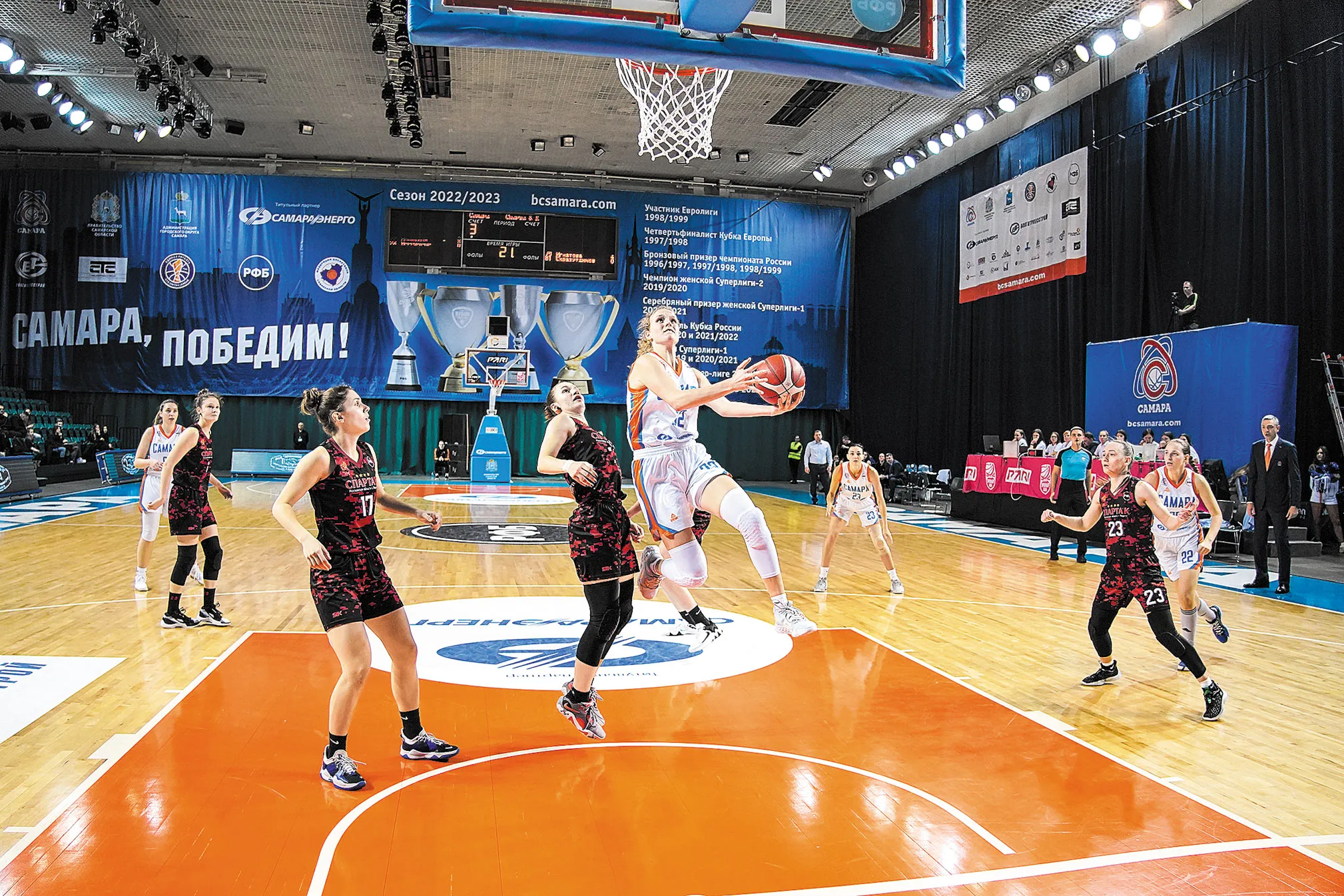 Первую половину матча, прошедшего в "МТЛ Арене", хозяйки площадки выиграли (42:41). Затем команда добавила оборотов. Несколько подборов и перехват совершила бразильянка Лира Маседу, завершив атаки "Самары" в быстром прорыве. Трехочковый забросила Ольга Новикова, дважды забила из-под кольца Наталья Ясевичене. После того как в концовке игры 8 очков подряд набрала Маседу, "Спарта" не отыгралась.