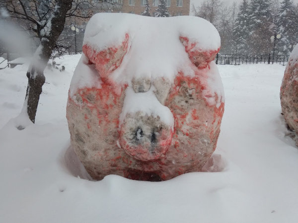 Да не один, а целых три. Композиция скульптур из снега три поросёнка "украшает" (если это слово вообще уместно) одну из площадей Пензы – Фонтанную. Странные одутловатые фигуры установили в центре города в честь символа 2019 года по восточному календарю. Кстати, сходство с реальными хрюшами угадывается лишь по наличию органа, отдаленно напоминающего пятачок. Свинобратство пугает случайных прохожих в тёмное время суток, да и днём выглядит совсем не дружелюбно. Некоторые утверждают, что пензенские свиньи "перекошмарили самарских". Якобы скульптурная композиция в городе на Суре как минимум в три раза страшнее зловещей скульптуры в парке Дружбы в