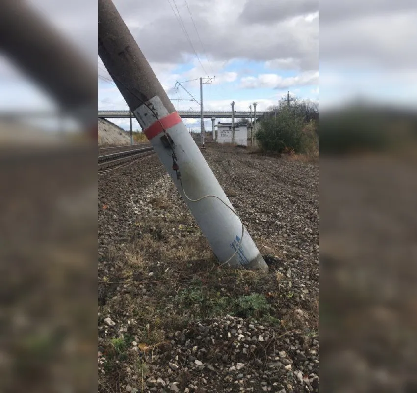 Как сообщили в пресс-службе ведомства, около 13:00 17 октября на 909 км Куйбышевской железной дороги на перегоне Новообразцово - Балашейка из-за сильного ветра накренилась бетонная опора ЛЭП. Из-за этого движение поездов было приостановлено.