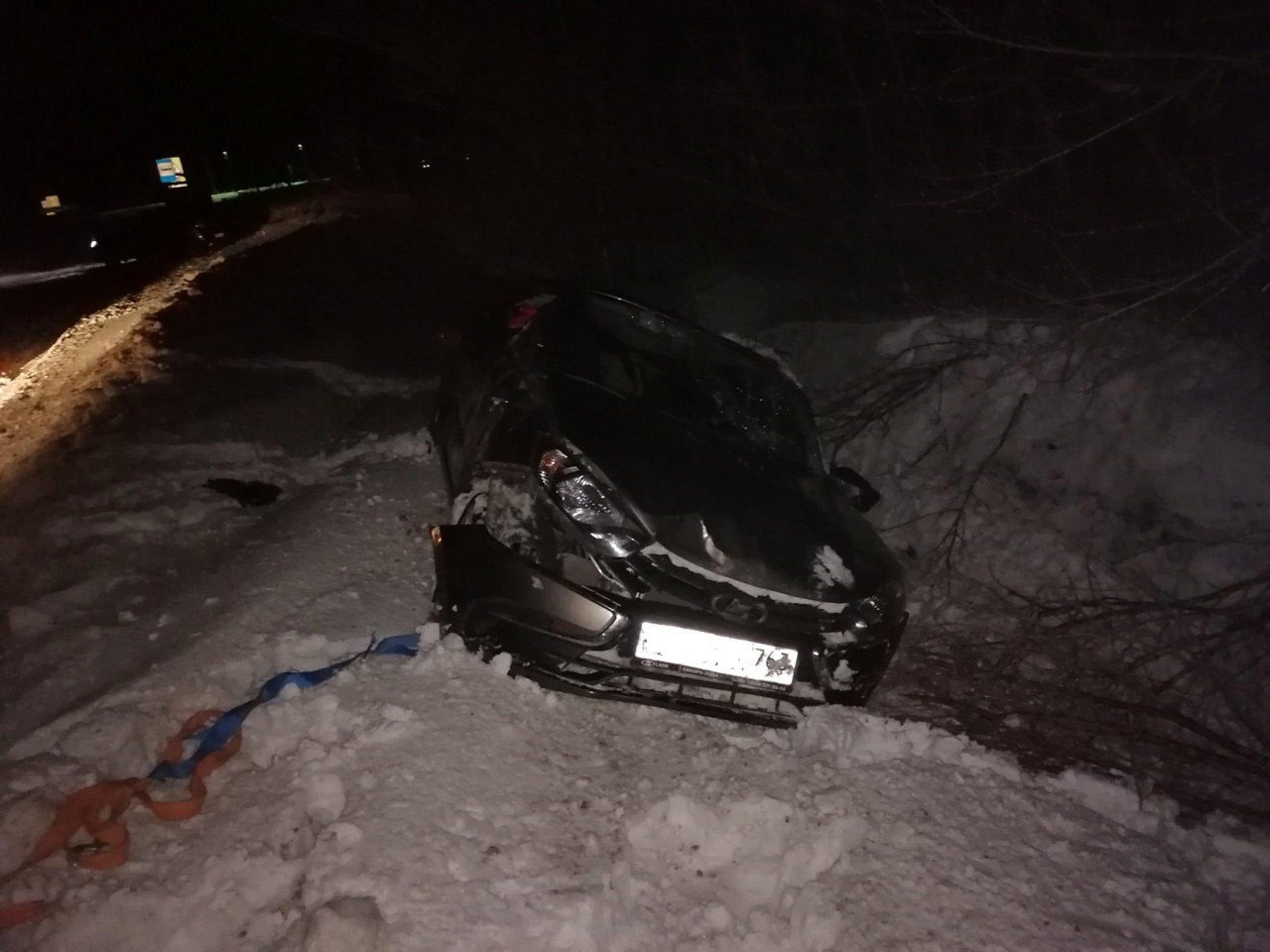 На трассе Безенчук - Александровка - Верхнепечерское автолюбитель превысил скорость и улетел в кювет. Машина перевернулась. Авария произошла в темное время суток во время снегопада.