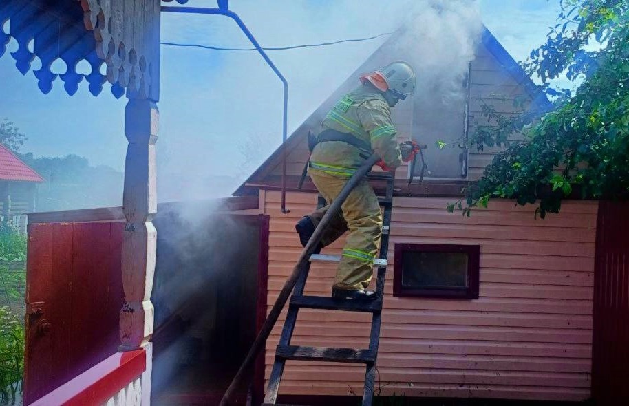 Они обнаружили, что на улице Мельничной полыхает крыша бани. Огонь охватил 15 кв. м.