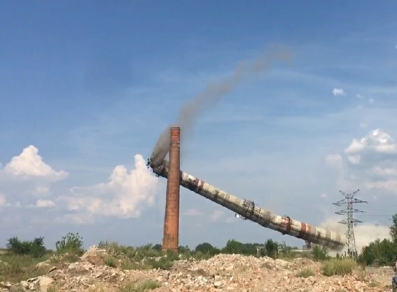 В Чапаевске взорвали опасную трубу высотой 120 метров