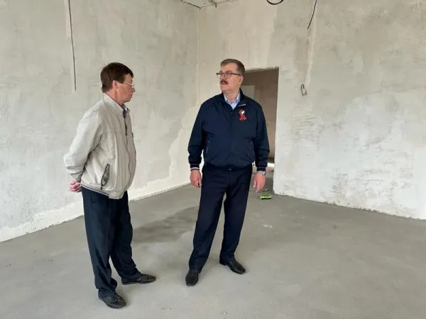 Глава района Валерий Князькин контролирует ход проведения ремонтных работ, периодически посещая здание школы и встречаясь с подрядчиком и руководством школы.