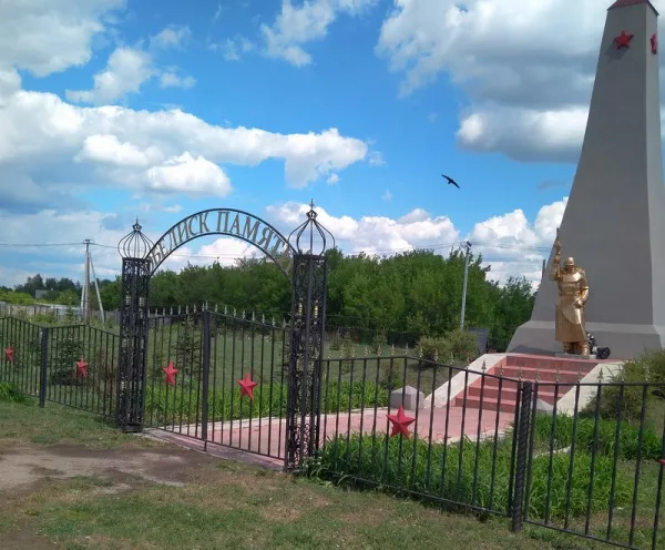 По словам жительницы села Ирины Ахмисевой, сквер 60-летия Победы и сам памятник расположены на месте старого кладбища, где были захоронены воины, умершие от ран в эвакогоспитале, находившемся в годы войны в селе: