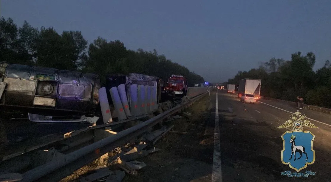 47-летний водитель полуприцепа Volvo, двигавшийся со стороны Тольятти, из-за лопнувшего колеса потерял управление и выехал на полосу встречного движения. Разделяющее потоки железное ограждение большегруз не сдержало.