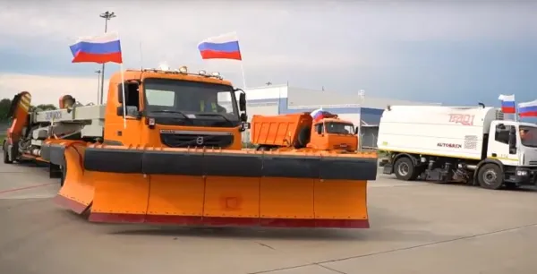 Эти машины ежедневно обслуживают взлетно-посадочные полосы, самолеты, пассажиров. 30 единиц спецтехники украсили флагами РФ в Курумоче. Они торжественно прошли по территории колонной и встроились в гигантскую надпись - "Россия".