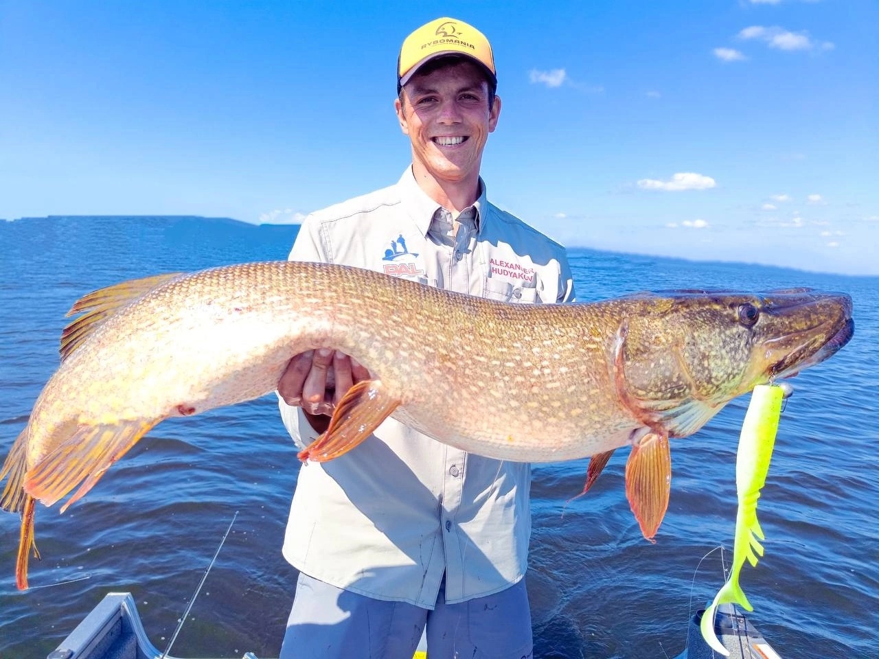 Далее последовало чуть ли не самое трудное - извлечение приманки (25-сантиметровой силиконовой рыбки) из щучьей пасти.