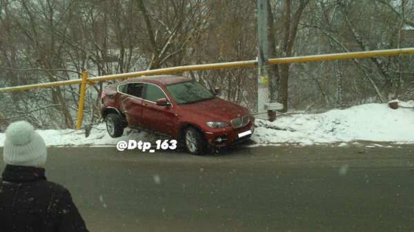 Сегодня, 22 марта, в Новокуйбышевске произошло ДТП на подъёме на улицу Ульяновскую. BMW X6 влетела в дорожное ограждение. Очевидцы выложили фото в соцсети. Пользователи в комментариях предположили, что иномарку могло занести на скользкой дороге.