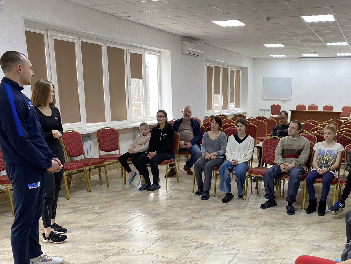 Сначала переселенцы познакомились с чемпионом: рассказали о себе, своих увлечениях, кем работали и как покидали родные дома. А Александр Юрченко поделился историями побед, спортивных травм, графиком тренировок и показал свои награды.