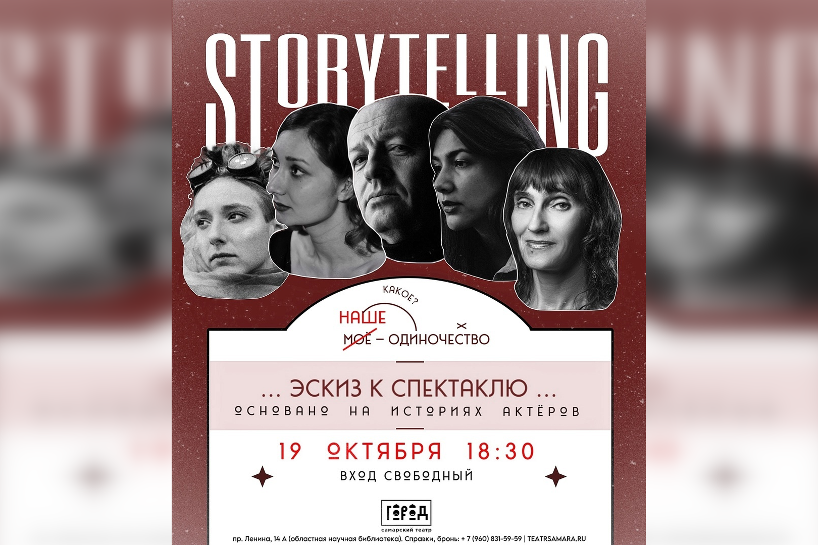 В представлении будут заняты актеры театра "Город" Борис Трейбич, Татьяна Быкова, Надежда Атылина, Анна Корабель, выпускница СГИК и в прошлом актриса театра "Самарская площадь" Эльмира Некрасова.