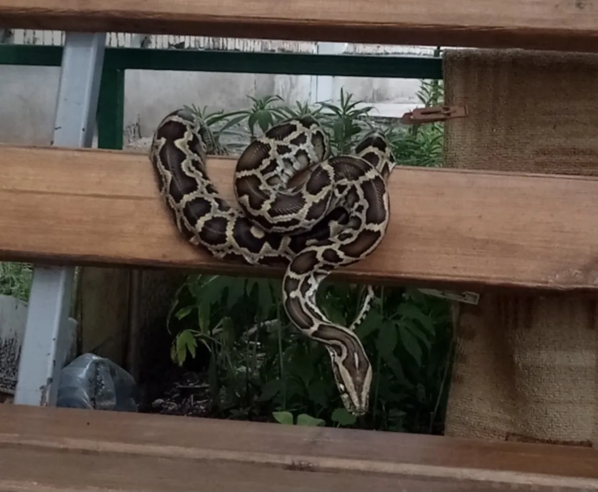 Около подъезда по ул. Кооперативной, 49, обнаружили необычного жителя. На лавочке на солнце отдыхал огромный питон. Его хозяина срочно начали разыскивать в социальных сетях.