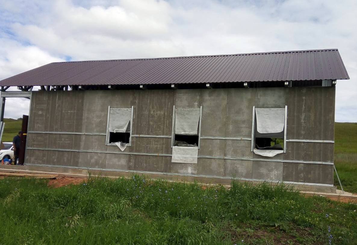 В настоящее время у нового здания ФАПа уже возведены стены и крыша. Ведется утепление стен.