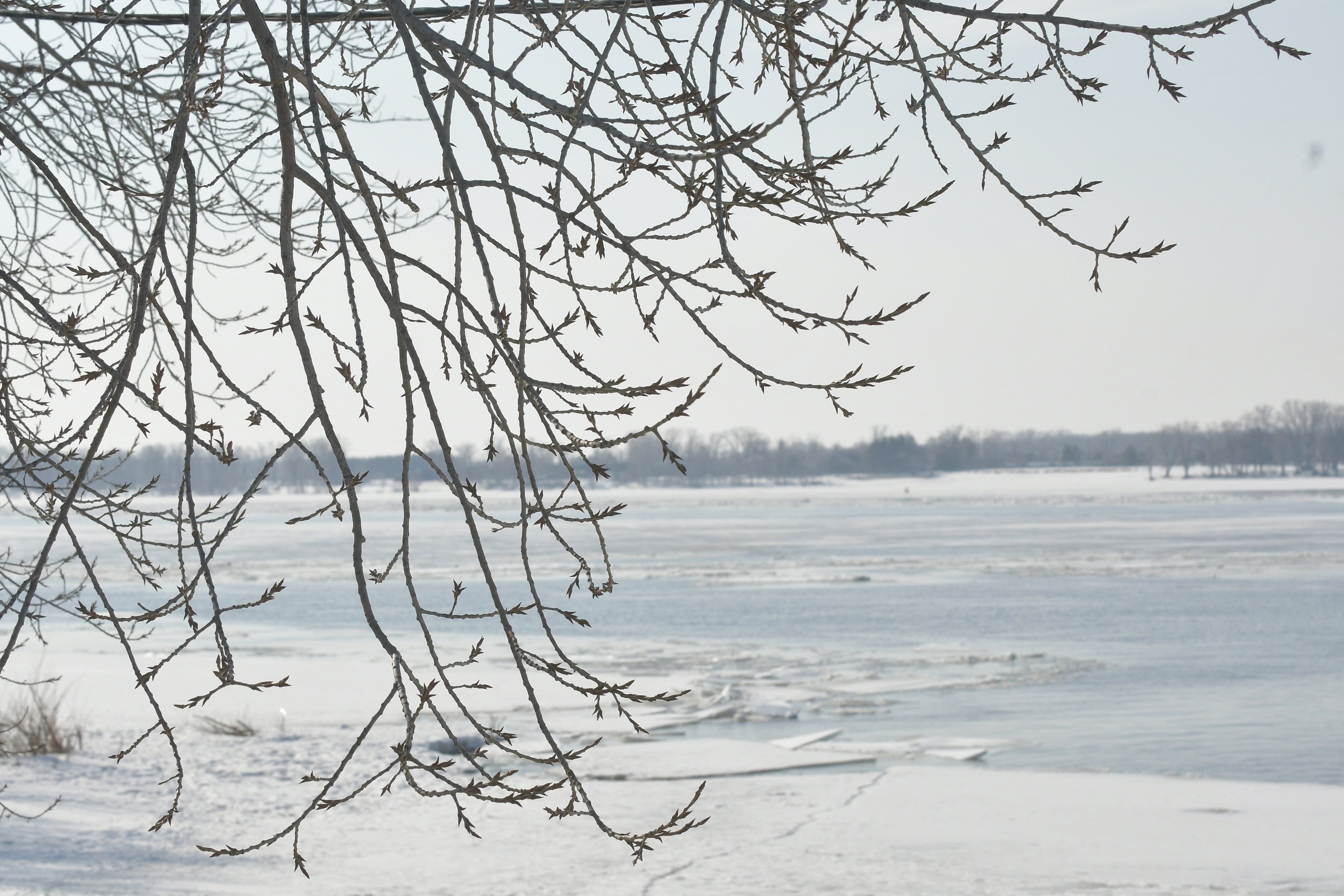 Течение реки открылось посередине напротив областного центра. Ранее синоптики прогнозировали начало половодья на первую декаду апреля.